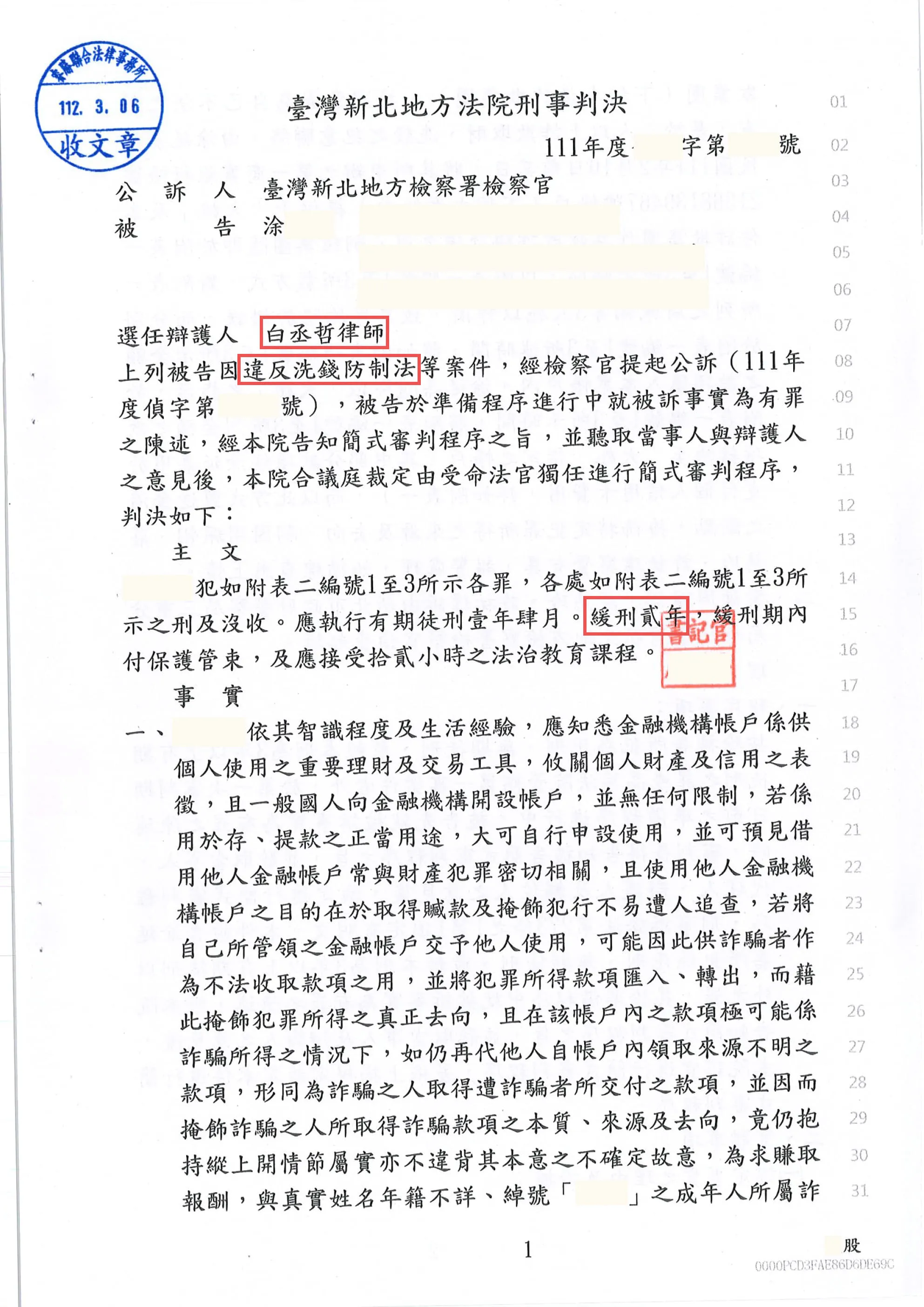 案經新北地方法院採認律師上開主張,而為被告「緩刑」判決。
